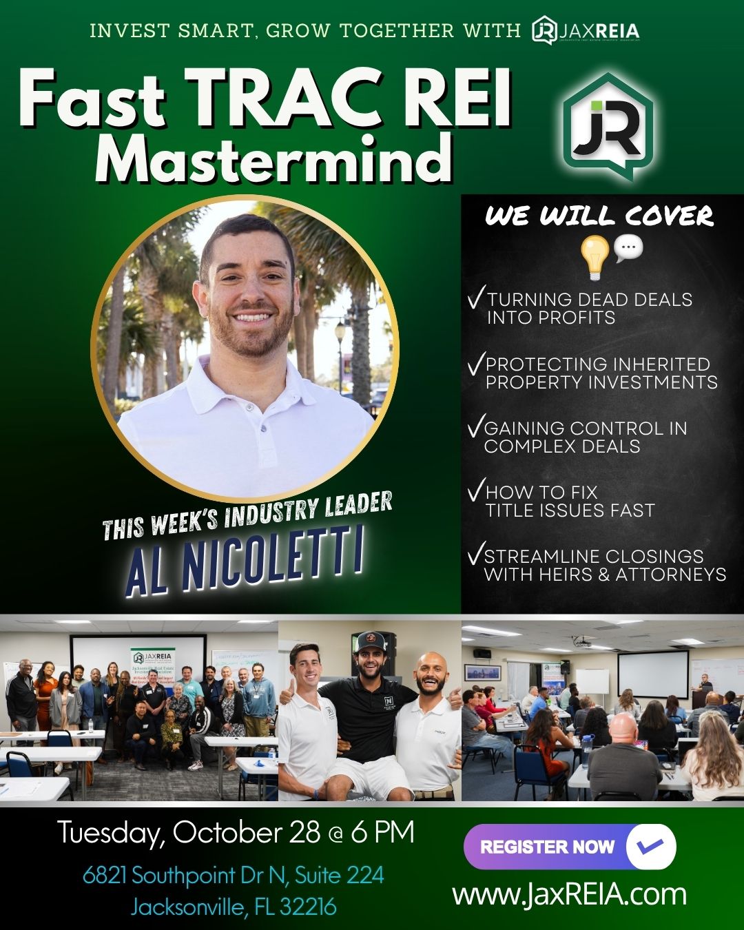 Whether you’re new to investing or looking to scale your business, the FAST TRAC REI Mastermind gives you the tools, insights, and support you need to succeed in today’s competitive market.